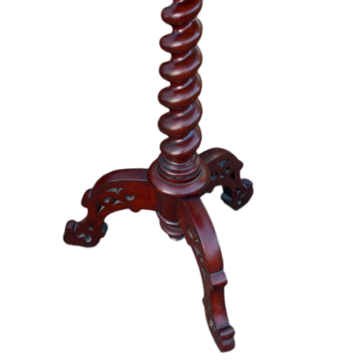 Marvellous fret work on legs and with barley twist stem table top hinged.